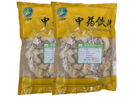 为姜科多年生草本植物姜Zingiber officinale Rosc. 的干燥根茎。主产于四川、湖北、广东、广西、福建、贵州等地。均系栽培。冬季采收,除去须根及泥沙,洗净晒干或低温烘干。